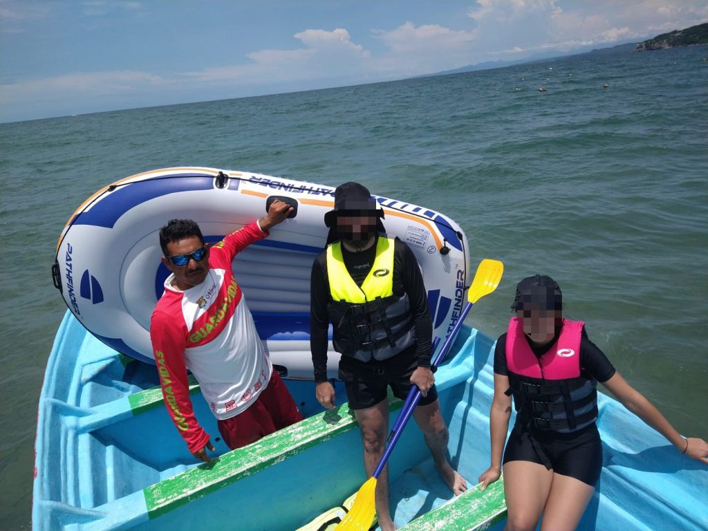 El personal guardavida, inmediatamente procedió a realizar las maniobras para subir a las dos personas a la panga, donde al entrevistarlos comentaron que se encontraban navegando en la lancha cuando las fuertes olas ya no les permitieron continuar con su recorrido ya que estaban siendo arrastrados mar adentro.