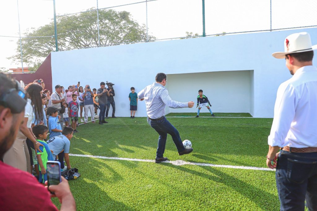 En un ambiente lleno de entusiasmo, el presidente municipal Héctor Santana García entregó oficialmente una nueva cancha de fútbol rápido en el poblado de Altavela, un espacio moderno, seguro y pensado especialmente para que niñas, niños y jóvenes tengan un lugar digno donde jugar, convivir y soñar en grande.