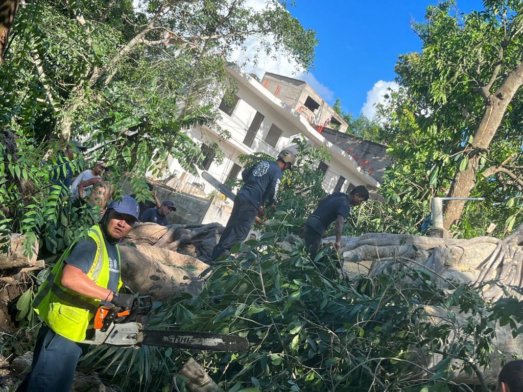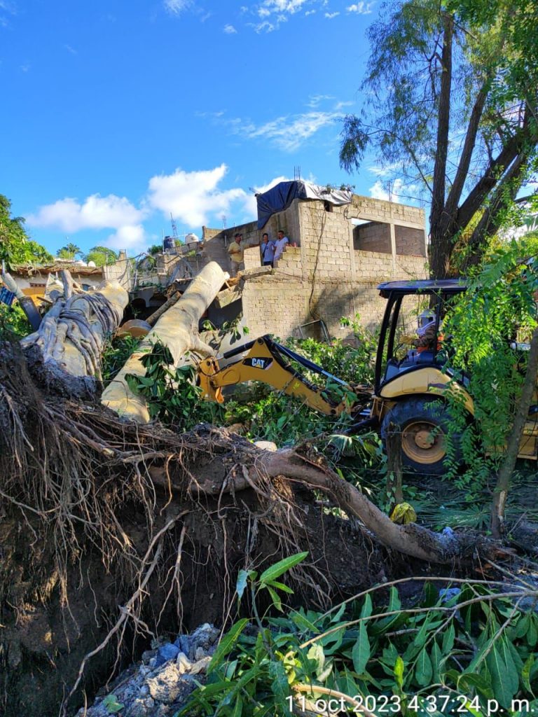 El Gobierno del Estado de Nayarit a través de la Secretaría de Seguridad y Protección Ciudadana retira un árbol que cayera sobre una vivienda en la localidad de Sayulita, en el municipio de Bahía de Banderas.