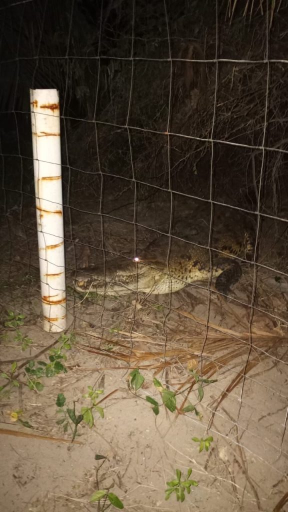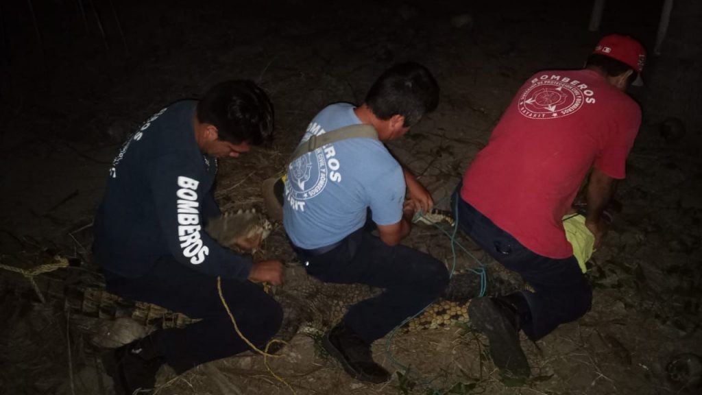 La Dirección General de Protección Ciudadana y Bomberos perteneciente a la Secretaría de Seguridad y Protección Ciudadana realiza acciones para reubicar a un cocodrilo que se encontrara en una zona urbana del municipio de San Blas.