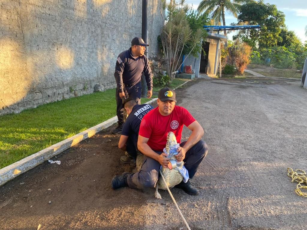 Los agentes canalizaron el reporte a los Bomberos de Nayarit, los cuáles se dirigieron al lugar en mención observando a un cocodrilo de aproximadamente 2.75 metros de largo, mismo que ya contara con un marcaje, refiriéndose a un cocodrilo macho que a presentara buen estado de salud.