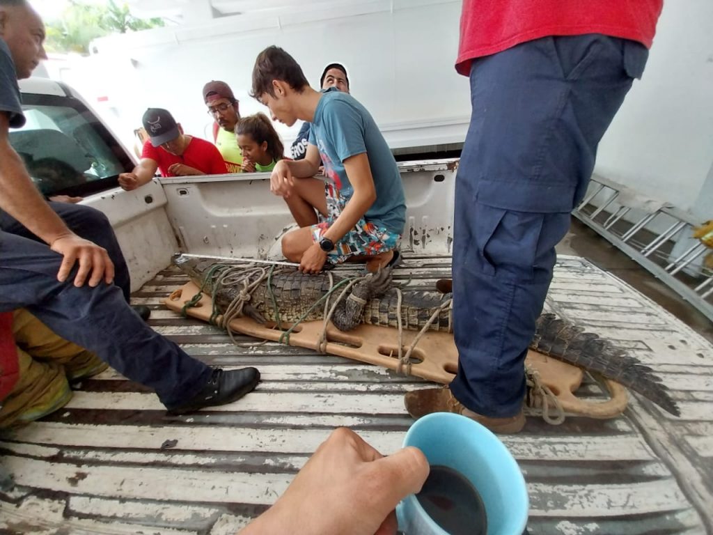 REUBICAN BOMBEROS DE NAYARIT COCODRILO DE DOS METROS EN BAHÍA DE BANDERAS