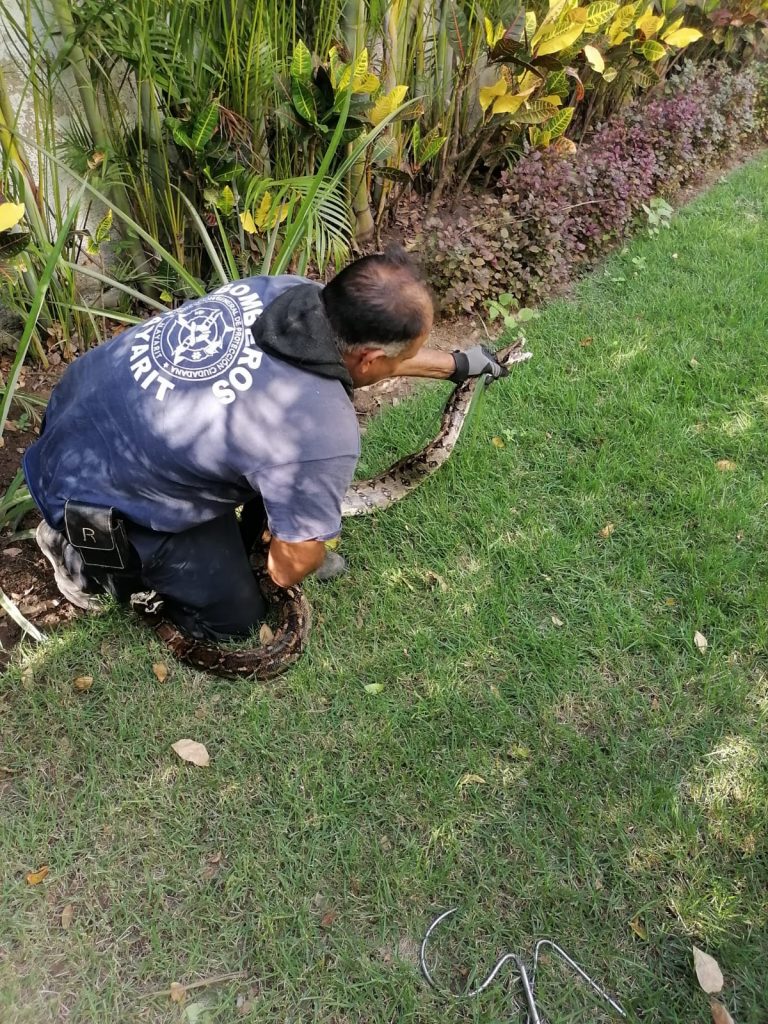 En atención a un reporte recibido a la línea de emergencias 9-1-1, donde se mencionara una serpiente al interior de un domicilio ubicado en la localidad de Nuevo Nayarit del municipio de Bahía de Banderas.