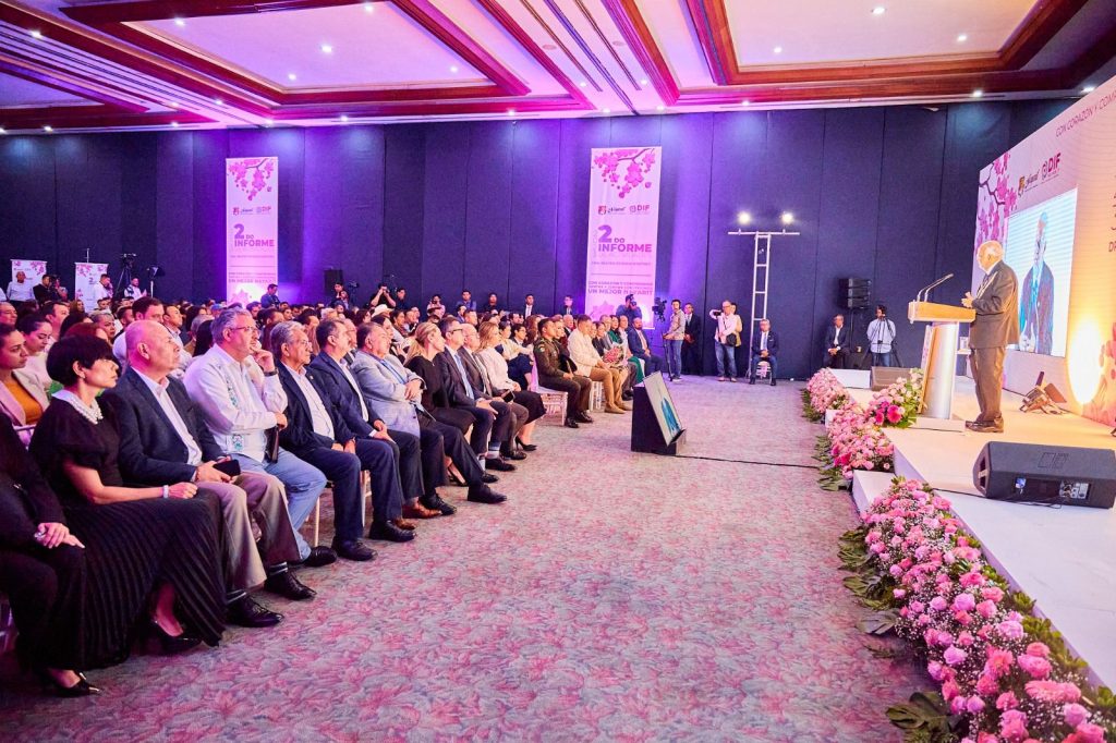 La presidenta del Sistema DIF Nayarit, doctora Beatriz Estrada Martínez, rindió su Segundo Informe de Actividades al frente de la institución social en compañía de su esposo, el gobernador del estado Miguel Ángel Navarro Quintero, de su familia, del director general de Integración Social del Sistema Nacional DIF, Rubén Ernesto Martínez Rodríguez; colaboradores del Corazón de Tu Gobierno, titulares de los 20 sistemas DIF municipales, autoridades de todos los órdenes de gobierno y representantes de los sectores vulnerables de la sociedad.