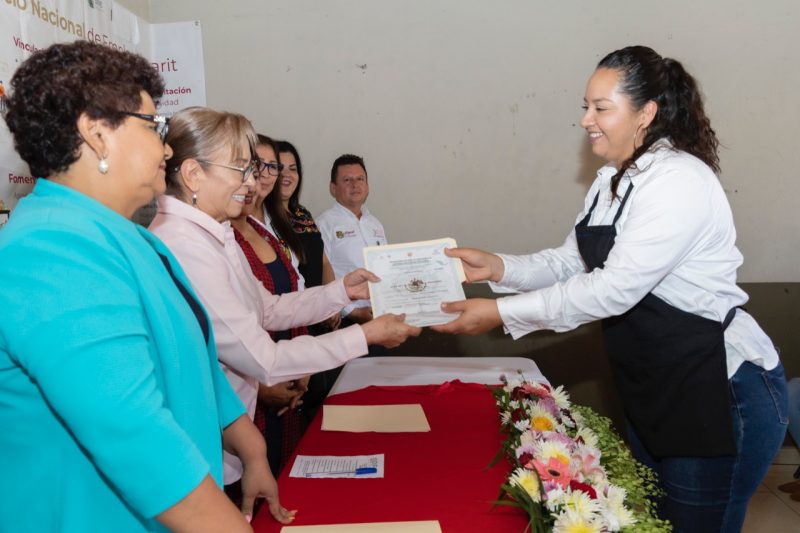 Posteriormente, también en la cabecera municipal, el Sistema DIF Nayarit clausuró el curso de Repostería en los niveles Básico, Intermedio y Avanzado, ofertado a través del programa Casa de la Mujer, en convenio con la Secretaría del Trabajo y Justicia Laboral, y el Instituto de Capacitación para el Trabajo del Estado de Nayarit.