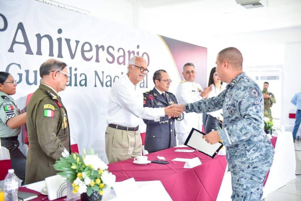 El gobernador del estado de Nayarit, Miguel Ángel Navarro Quintero asistió al 6° aniversario de la Guardia Nacional, celebrado en las instalaciones de esta institución ubicadas en La Cantera, municipio de Tepic. Ahí reconoció su labor como una fuerza clave en la estrategia de seguridad nacional y resaltó su trabajo coordinado en favor de la paz y el bienestar del pueblo de Nayarit.