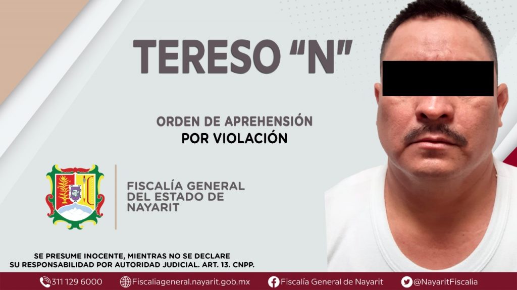 La Fiscalía General del Estado a través de la Agencia de Investigación Criminal dio cumplimiento a una orden de aprehensión en la capital nayarita contra Tereso “N”, por su presunta participación en hechos que bajo la apreciación de la ley configuran el delito de violación, cometido en agravio de una persona de sexo femenino de identidad reservada.