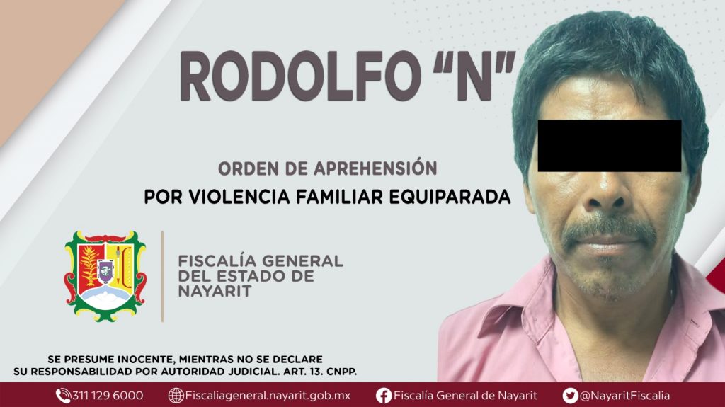 Elementos de la Agencia de Investigación Criminal de Nayarit ejecutaron una orden de aprehensión contra Rodolfo “N”, por su presunta participación en hechos que según apreciación de la ley encuadran el delito de violencia familiar equiparada, cometido en contra de una mujer y una niña de identidades reservadas.