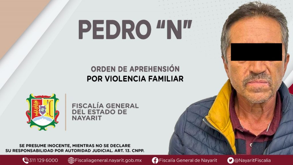 La Fiscalía General del Estado a través de la Agencia de Investigación Criminal dio cumplimiento a una orden de aprehensión en la ciudad de Tepic contra Pedro “N”, por su presunta participación en hechos que bajo la apreciación de la ley configuran el delito de violencia familiar, cometido en agravio de una persona de sexo masculino de identidad reservada.