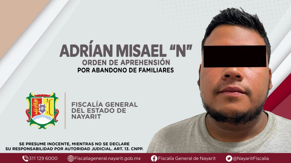 En la ciudad de Tepic, elementos de la Agencia de Investigación Criminal de Nayarit ejecutaron una orden de aprehensión contra Adrián Misael “N”, por su presunta participación en hechos que según apreciación de la ley encuadran el delito de abandono de familiares, ilícito cometido en agravio de una menor de edad de identidad reservada.