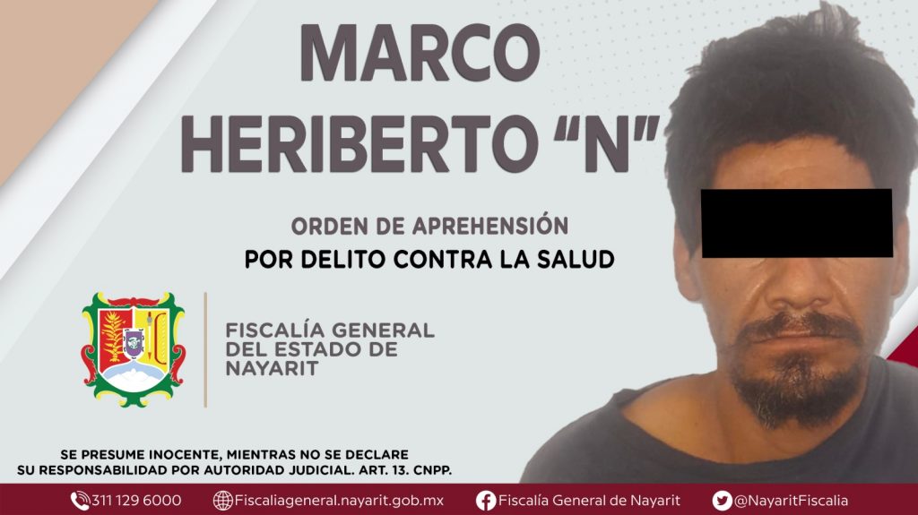 La Fiscalía General del Estado a través de la Agencia de Investigación Criminal dio cumplimiento a una orden de aprehensión en la ciudad de Tepic contra Marco Heriberto “N”, por su presunta participación en hechos que bajo la apreciación de la ley configuran el delito contra la salud en agravio de la sociedad.