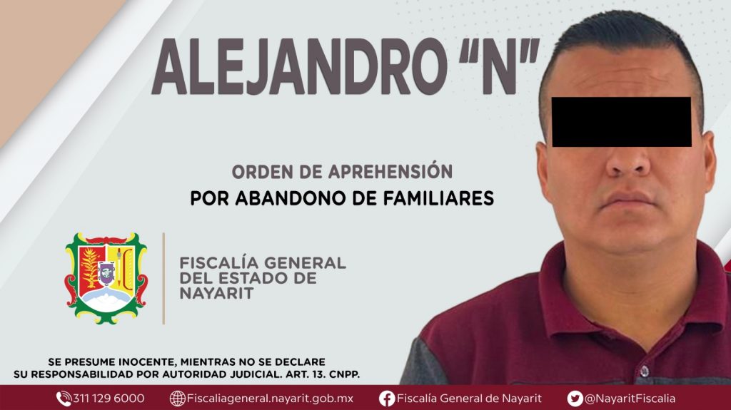 En la zona Centro del municipio de Acaponeta, la Fiscalía General del Estado a través de la Agencia de Investigación Criminal dio cumplimiento a una orden de aprehensión contra Alejandro “N”, por su presunta participación en hechos que bajo la apreciación de la ley configuran el delito de abandono de familiares, en agravio de una persona de sexo femenino de identidad reservada.