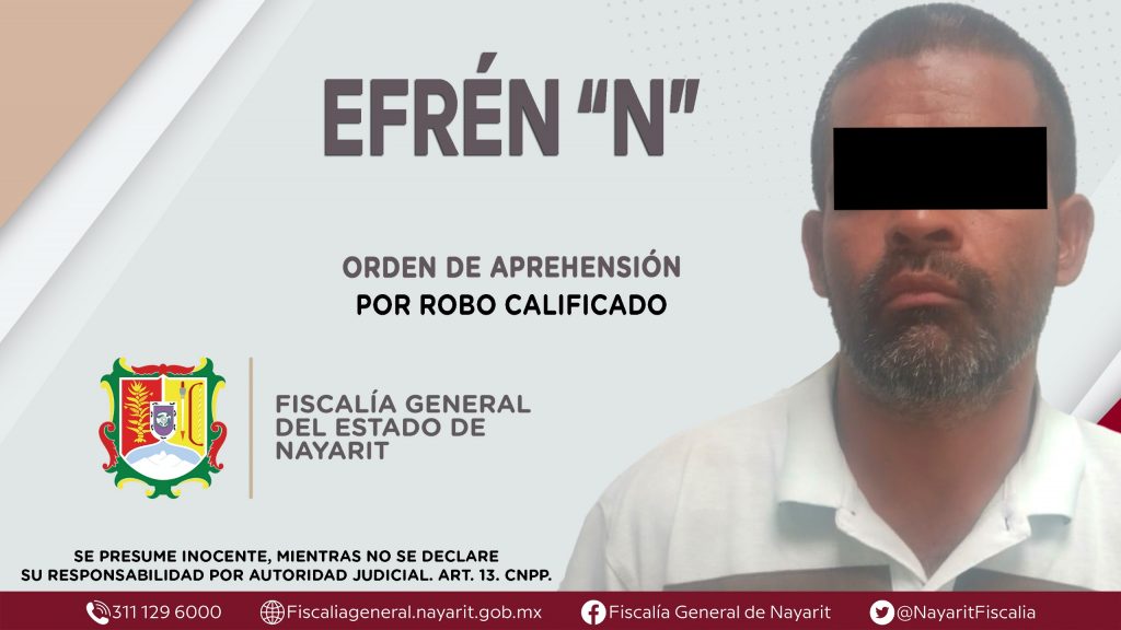 En el interior del Centro de Readaptación Social “Venustiano Carranza”, elementos de la Agencia de Investigación Criminal de Nayarit ejecutaron una orden de aprehensión contra Efrén “N”, por su presunta participación en hechos que según apreciación de la ley configuran el delito de robo calificado, cometido en agravio de una persona de sexo masculino de identidad reservada.