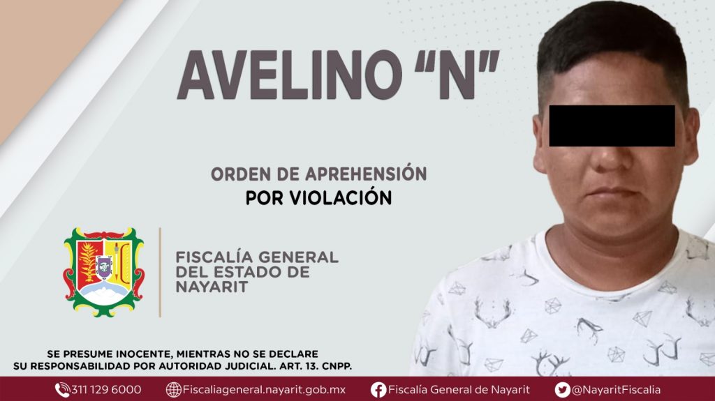 Elementos de la Agencia de Investigación Criminal de Nayarit ejecutaron una orden de aprehensión contra Avelino “N”, por su presunta participación en hechos que según apreciación de la ley encuadran el delito de violación, cometido contra una persona menor de dieciocho años de identidad reservada.
