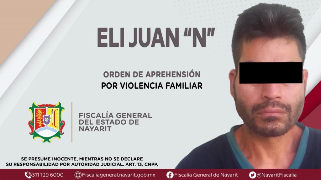 En la ciudad de Tepic, la Fiscalía General de Nayarit a través de la Agencia de Investigación Criminal ejecutó una orden de aprehensión contra Eli Juan “N”, originario y vecino de la capital nayarita, por su presunta participación en hechos que según apreciación de la ley encuadran el delito de violencia familiar, cometido en agravio de una persona de sexo femenino de identidad reservada.