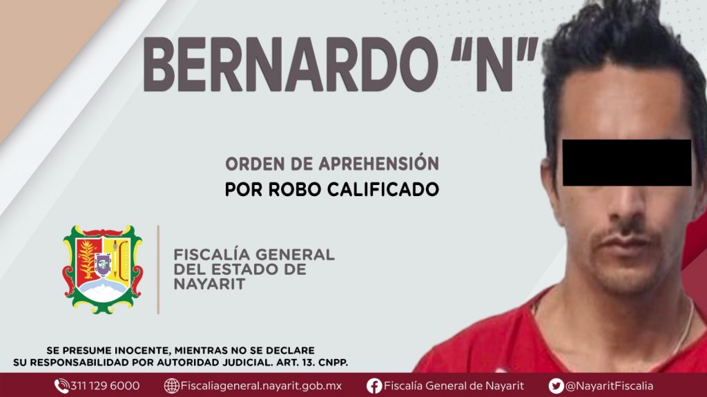 En el interior del Centro de Readaptación Social Regional de Bucerías, municipio de Bahía de Banderas, elementos de la Agencia de Investigación Criminal de Nayarit ejecutaron una orden de aprehensión contra Bernardo “N”, por su presunta participación en hechos que según apreciación de la ley encuadran el delito de robo calificado, cometido en perjuicio de una persona de sexo masculino de identidad reservada.