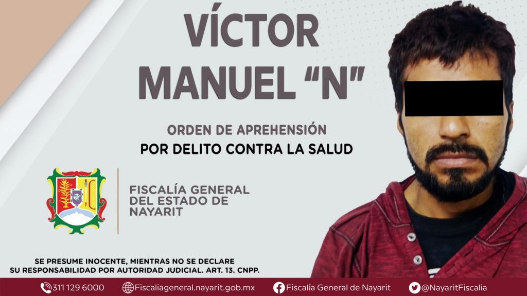 La Fiscalía General del Estado a través de la Agencia de Investigación Criminal dio cumplimiento a tres órdenes de aprehensión en la ciudad de Tepic contra Víctor Manuel “N”, por su presunta participación en hechos que bajo la apreciación de la ley configuran el delito contra la salud en su modalidad de narcomenudeo -en su hipótesis de posesión de psicotrópicos (metanfetaminas)-, en agravio de la sociedad.