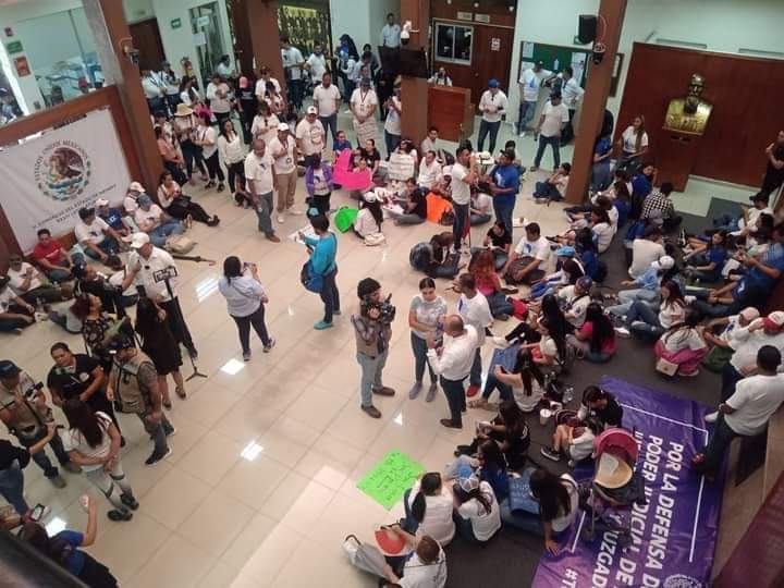 En el transcurso de la mañana y después del mediodía de hoy, un centener de manifestantes del Poder Judicial de la Federación, acudieron a la sede del Congreso Estatal para poder platicar con los diputados locales de la situación que les aqueja.