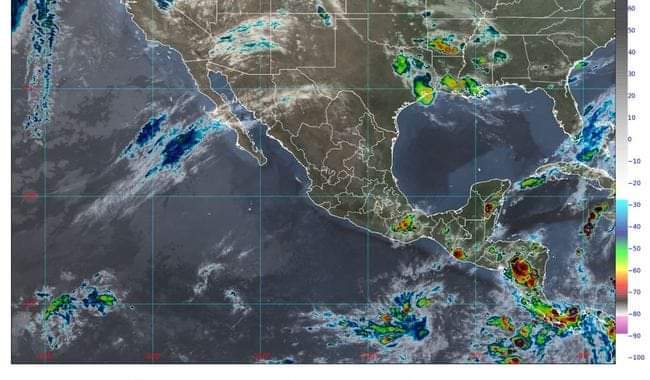 Para las próximas horas se pronostican lluvias puntuales fuertes (de 25 a 50 milímetros [mm]) en regiones de Chiapas, Oaxaca, Puebla, Quintana Roo y Veracruz; chubascos (de 5 a 25 mm) en zonas de la Ciudad de México, Coahuila, Estado de México, Guerrero, Hidalgo, Morelos, San Luis Potosí, Tamaulipas y Tlaxcala, así como lluvias aisladas (de 0.1 a 5 mm) en Campeche, Guanajuato, Michoacán, Querétaro, Tabasco y Yucatán.