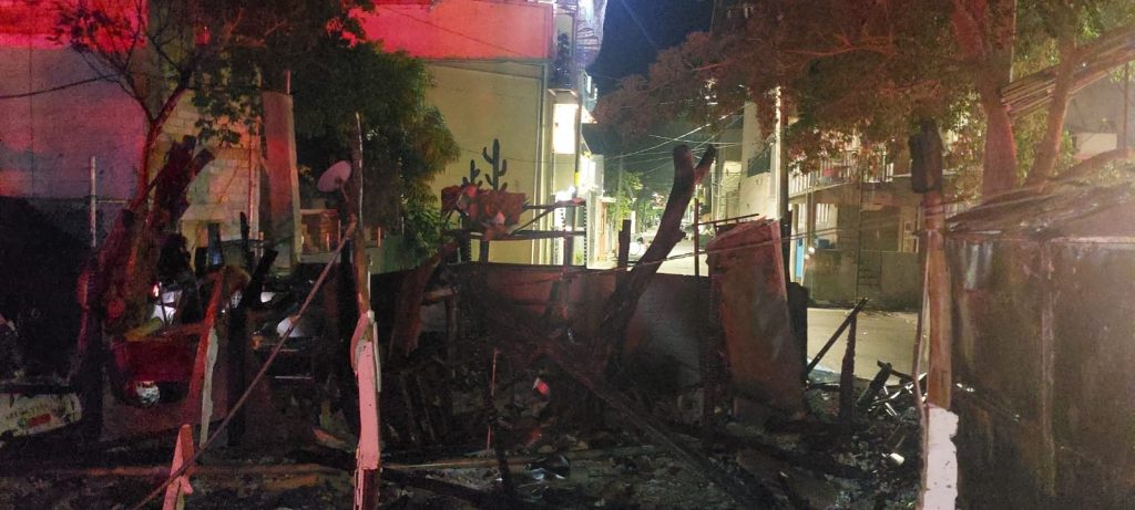 Elementos de Bomberos de Nayarit y la Policía Estatal Turística se trasladaron al lugar de los hechos, confirmando que se trataba de un incendio de una pequeña casa de madera, que al parecer fuera usada como cocina económica, asegurandose que nadie se encontraba al interior.