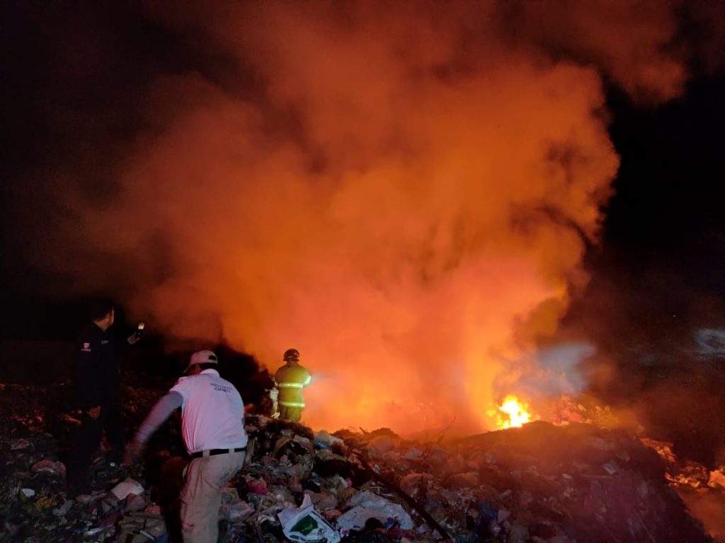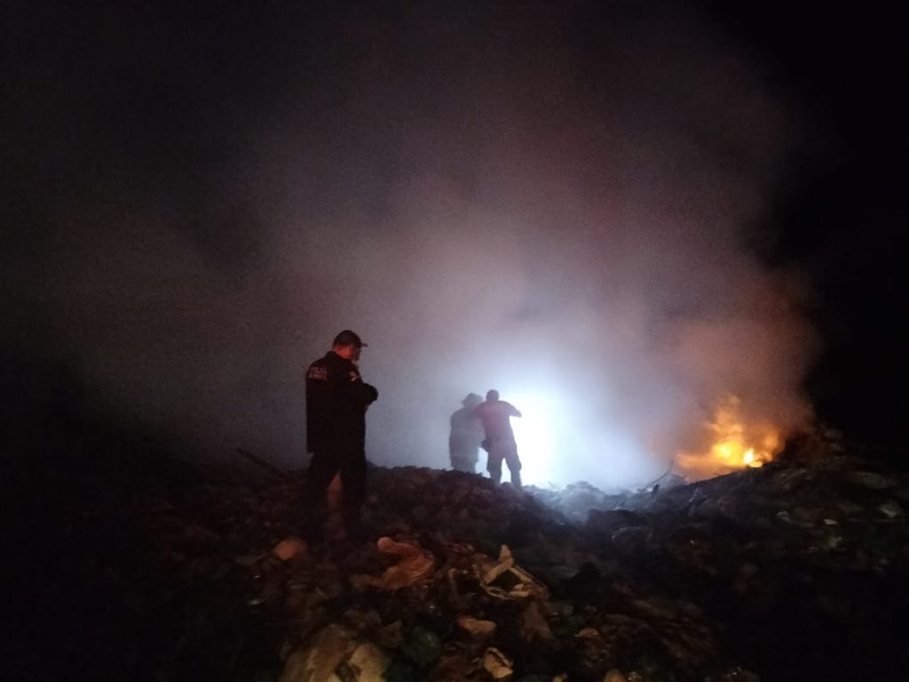 En atención a una solicitud de apoyo realizada por el personal de Protección Civil para sofocar un incendio presentado en el relleno sanitario municipal.