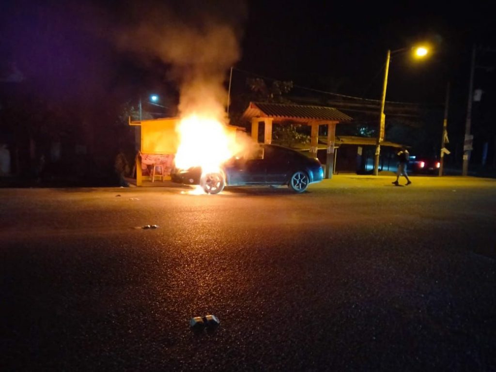 Al arribar al sitio se encontró un vehículo de la marca Nissan, sub marca Máxima, con placas de la Ciudad de México en libre combustión. Los bomberos procedieron a sofocar el incendio con el uso de una motobomba logrando apagarlo en su totalidad.