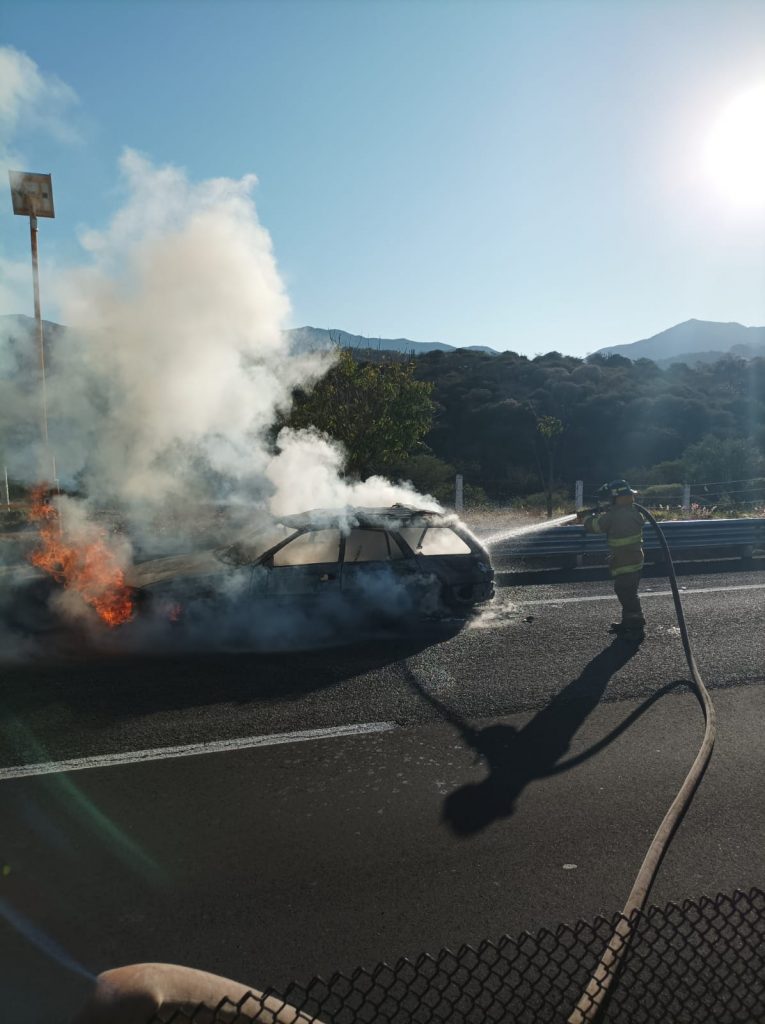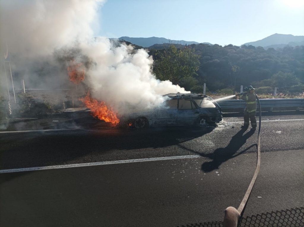 En atención a un reporte recibido a la línea de emergencias 9-1-1, donde se mencionara el incendio de un vehículo en la autopista Jala – Compostela, sobre el kilómetro 9+800.
