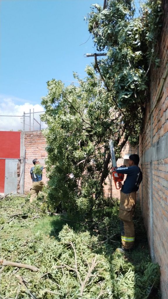 Donde los bomberos realizaron los trabajos correspondientes para cortar y retirar un árbol que se encontró tirado sobre una barda, logrando eliminar el riesgo.