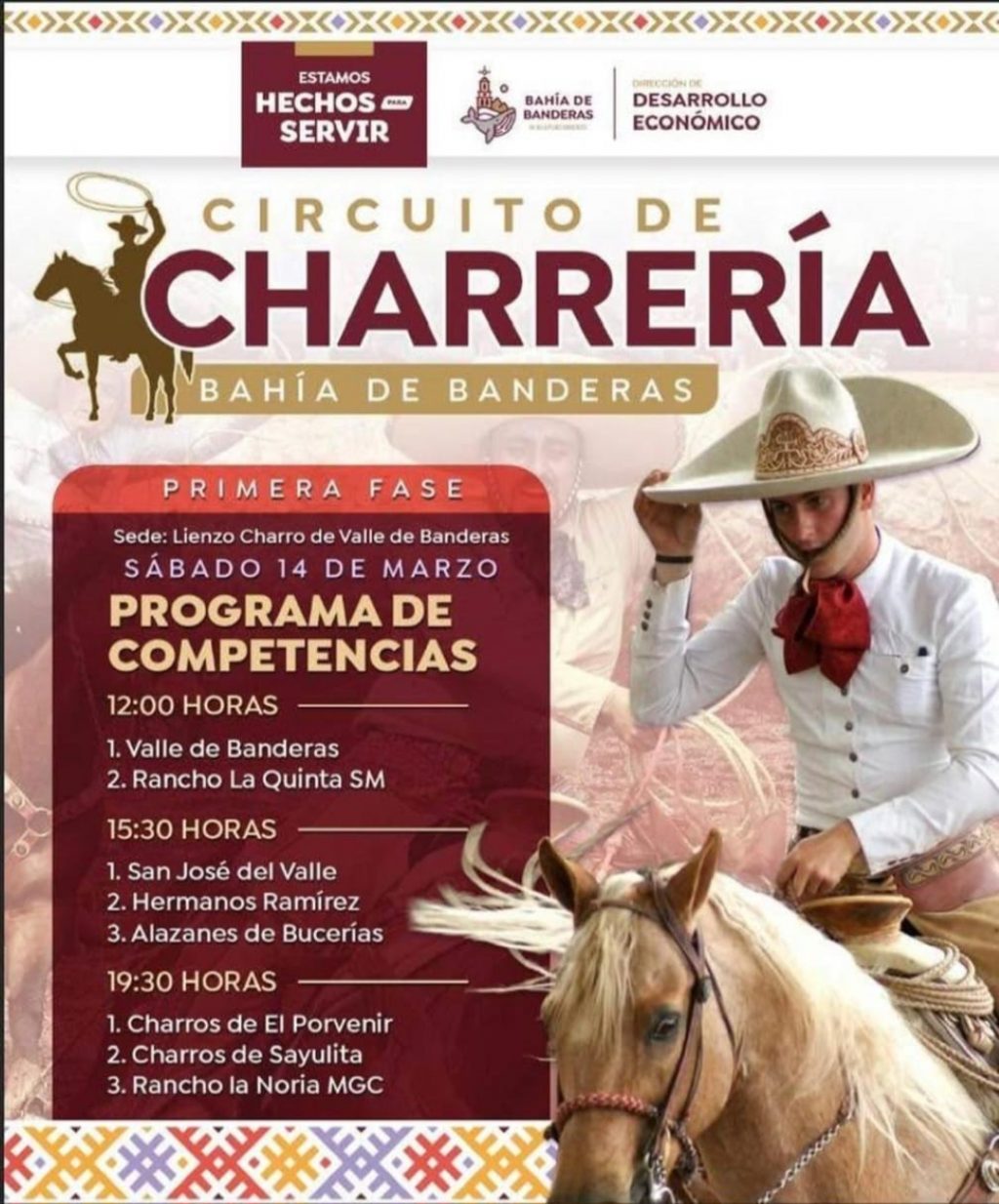 Este sábado 14 de marzo se llevará a cabo la primera fase del Circuito de Charrería Bahía de Banderas en el Lienzo Charro de Valle de Banderas.