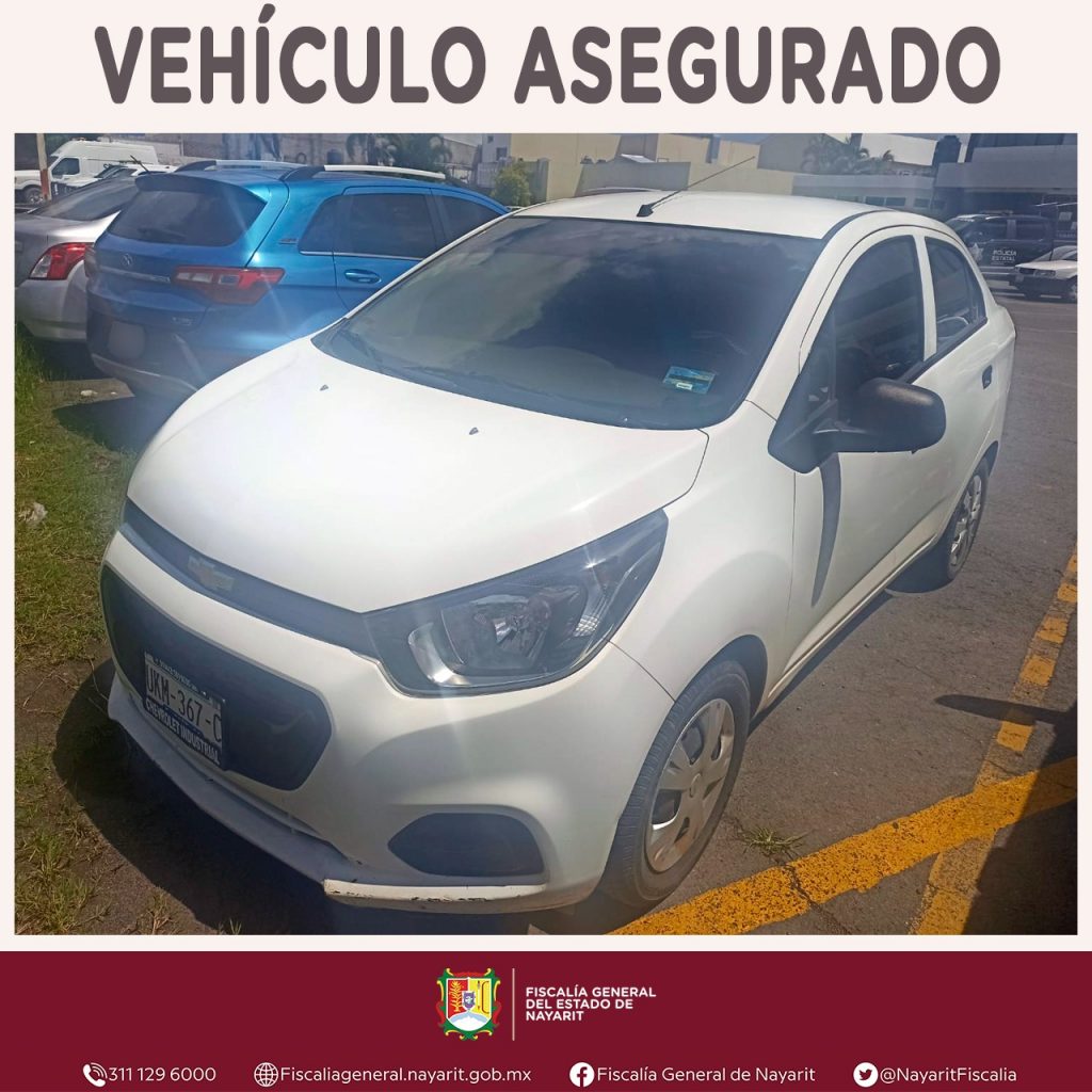 Dicha unidad es de la marca Chevrolet, tipo Beat, color blanco, con placas de circulación UKM-367-C del estado de Querétaro; número de serie MA6CB5CDXLT049597. Cabe señalar que el vehículo automotor fue puesto a disposición del Ministerio Público para las gestiones legales que procedan.