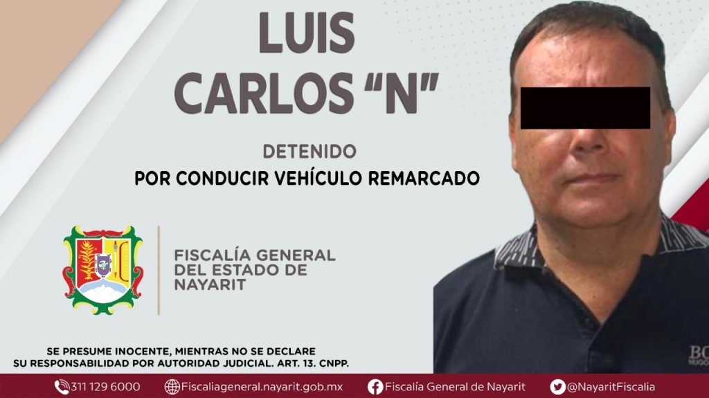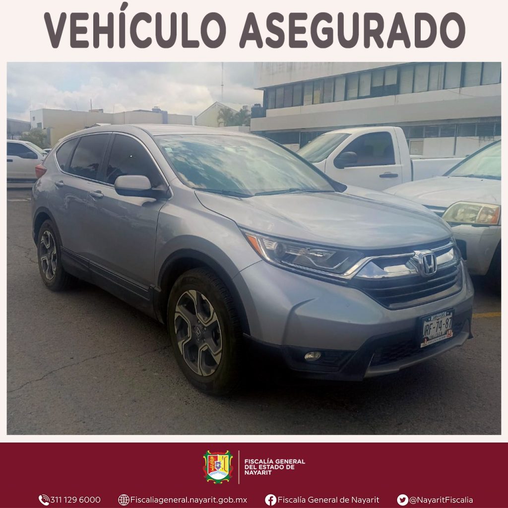 Dicha unidad es de la marca Honda, línea CR-V, color gris, con placas de circulación JRF-74-87 del estado de Jalisco; número de serie 1HGRW1844KL906030. Cabe señalar que se detuvo en flagrancia a Luis Carlos “N”, quien conducía el vehículo automotor; tanto él como la camioneta fueron puestos a disposición del Ministerio Público, para las gestiones legales que procedan.