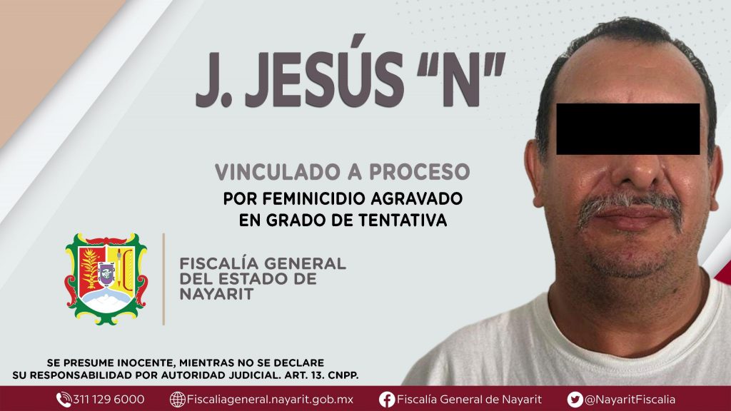 La Fiscalía General del Estado obtuvo por parte de un Juez de Control auto de vinculación a proceso contra J. Jesús “N”, por su probable participación en hechos que según apreciación de la ley configuran el delito de feminicidio agravado en grado de tentativa, cometido contra una mujer de identidad reservada.