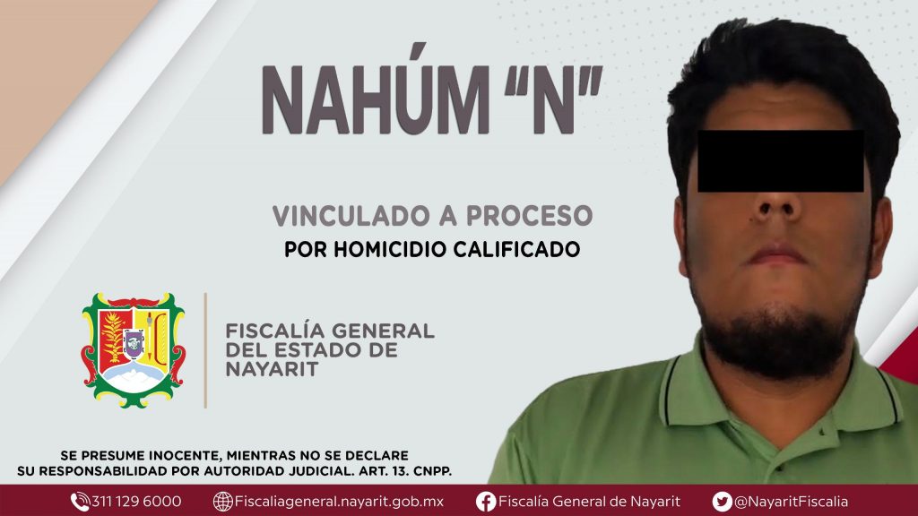 La Fiscalía General del Estado obtuvo por parte de un Juez de Control auto de vinculación a proceso contra Nahúm “N”, por su probable responsabilidad penal en hechos que según la ley configuran el delito de homicidio calificado, cometido contra una persona de sexo masculino de identidad reservada.