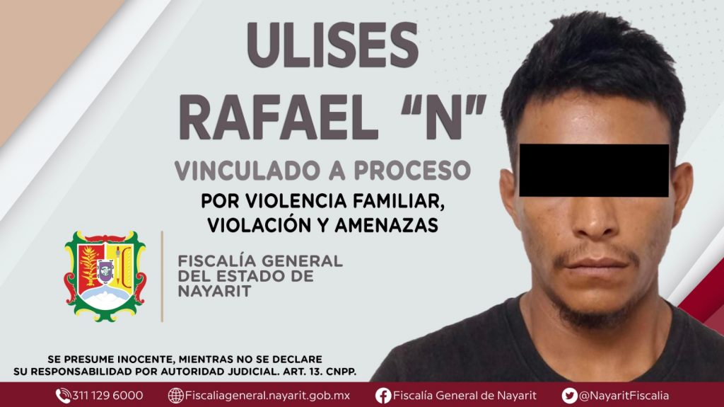 La Fiscalía General del estado de Nayarit logró de un Juez de Control auto de vinculación a proceso contra Ulises Rafael “N”, por su presunta responsabilidad en hechos que la ley señala como delitos de violencia familiar, violación y amenazas, cometidos en agravio de una mujer de identidad reservada.