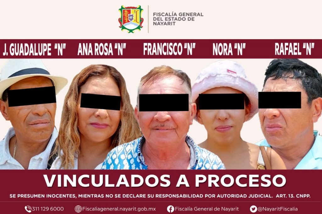 La Fiscalía General del Estado a través de la Agencia del Ministerio Público de la localidad Jarretaderas, municipio de Bahía de Banderas, obtuvo de un Juez de Control el auto de vinculación a proceso contra Nora Fernanda “N”, Ana Rosa “N”, J. Guadalupe “N”, Francisco “N” y Rafael “N”, por su presunta participación en hechos que bajo la apreciación de la ley configuran los delitos de desobediencia y resistencia de particulares y cohecho, cometidos en agravio de la sociedad.